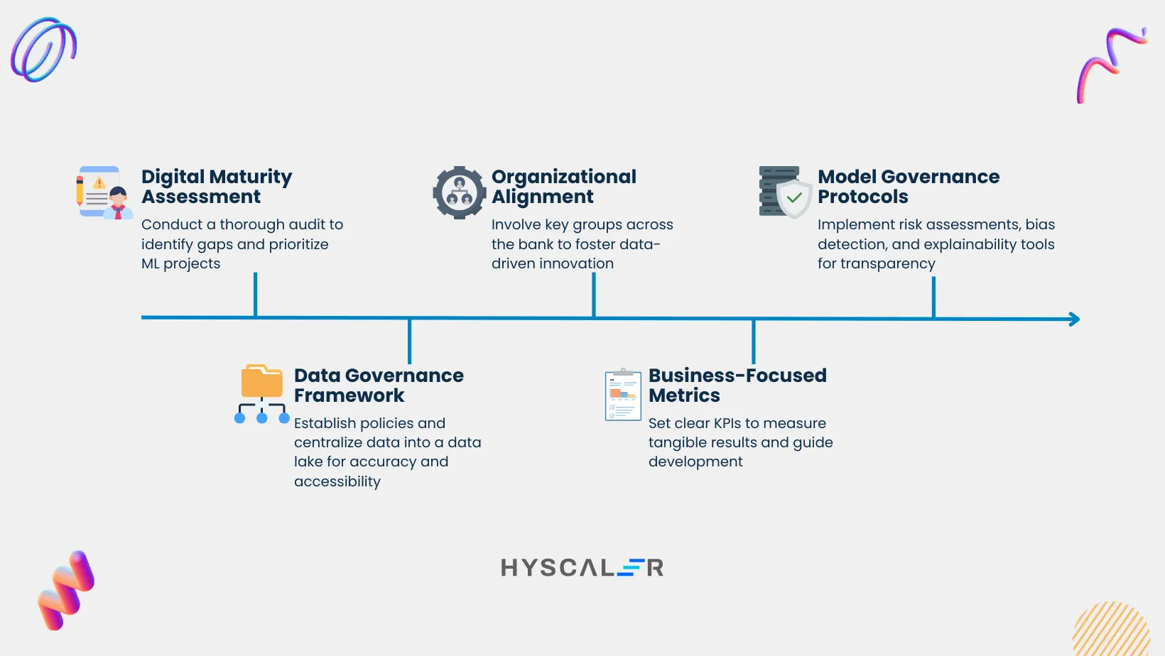 - Create a Coalition, Not Just a Team: Lasting ML initiatives need widespread organizational support. From the start, involve key groups: IT, business lines, legal, and compliance. Align on strategic goals. Define the project scope. Cultivate a culture of data-driven innovation throughout the institution.