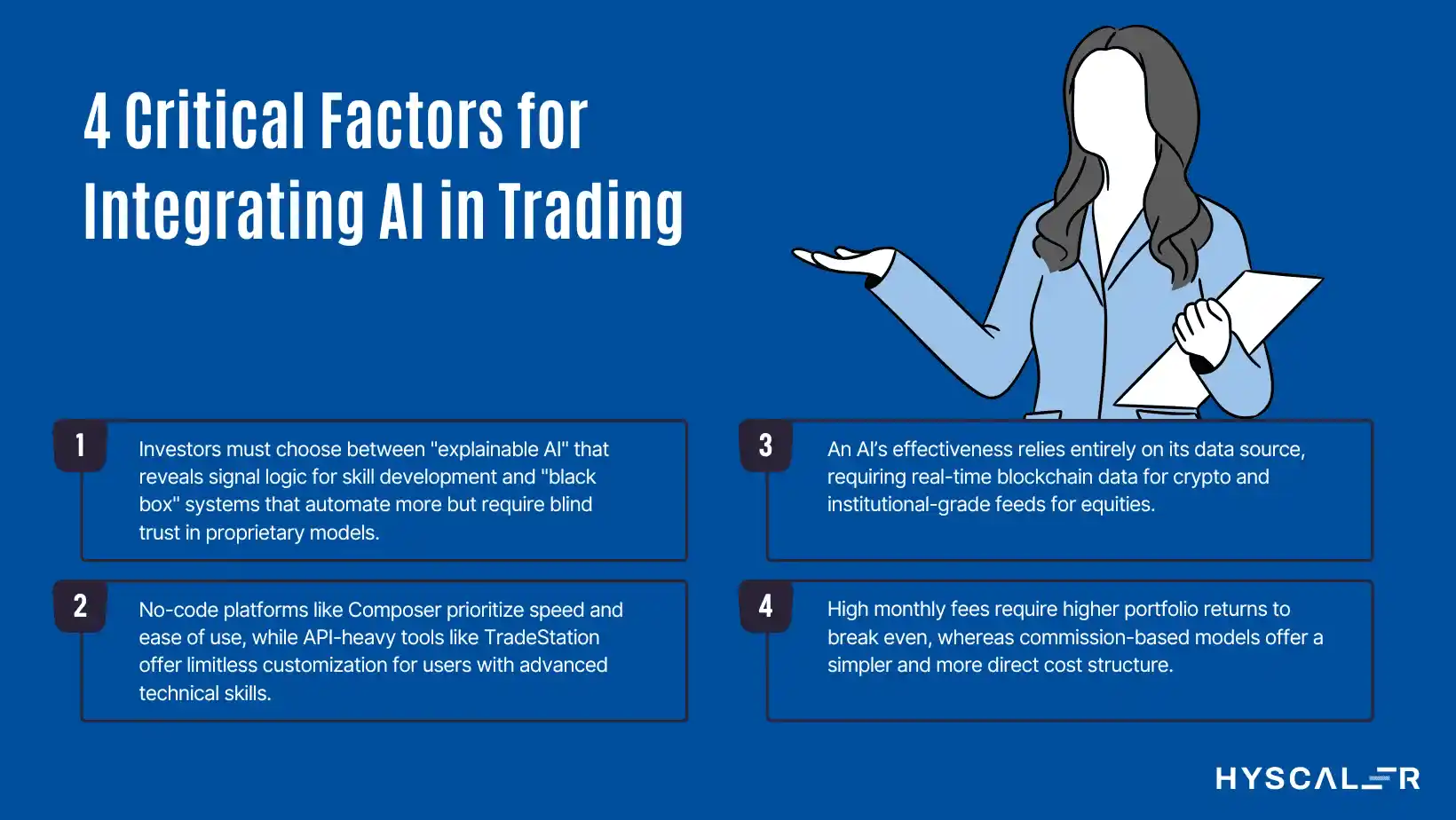 Clearly define your trading goals for successful AI integration. Before committing capital, evaluate these four critical factors.