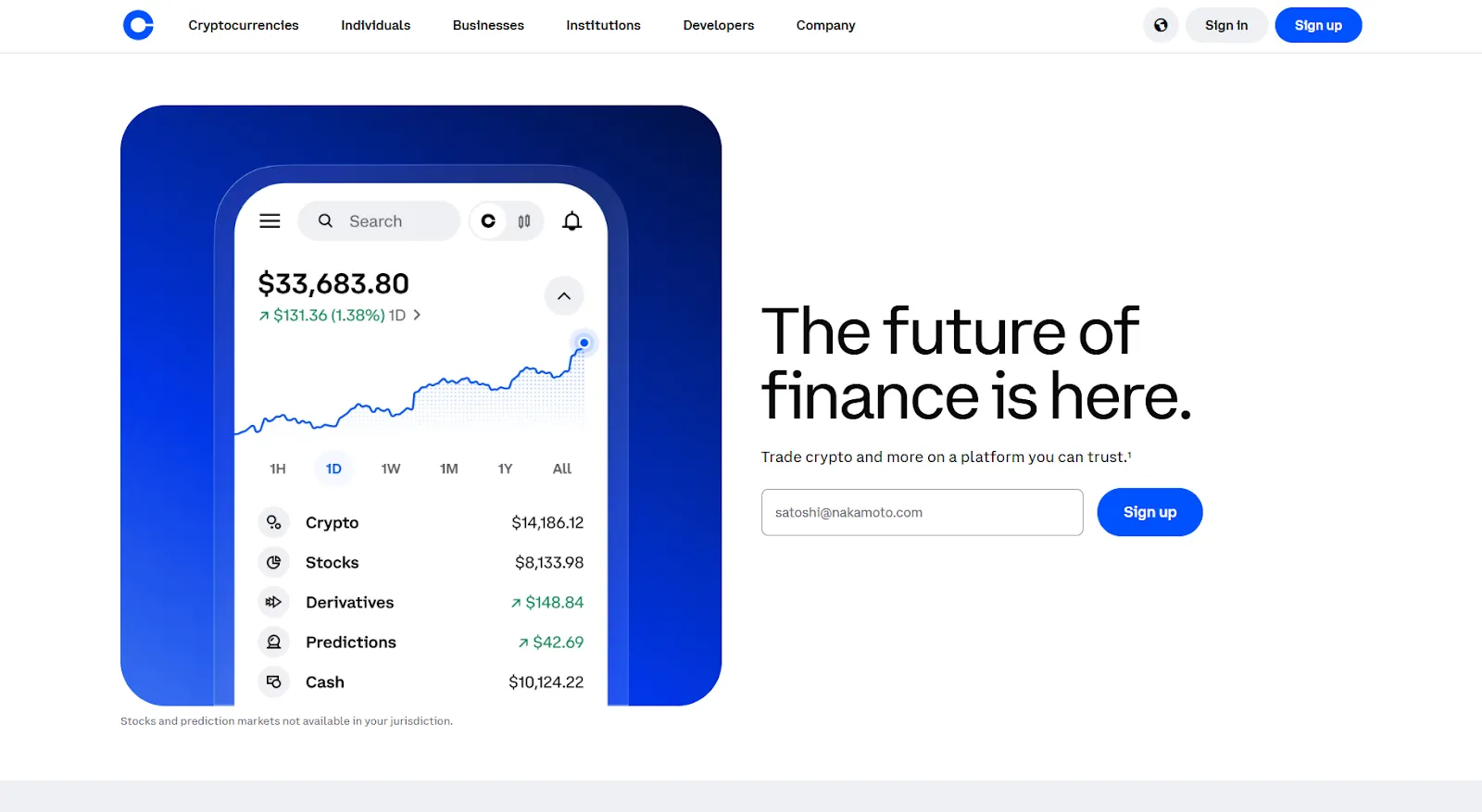 Coinbase offers different services for individuals, businesses, and institutions based on their specific needs. Mainly, however, you’ll be able to find different types of trades here, spot and futures trading, plus a credit or debit card funded by crypto.