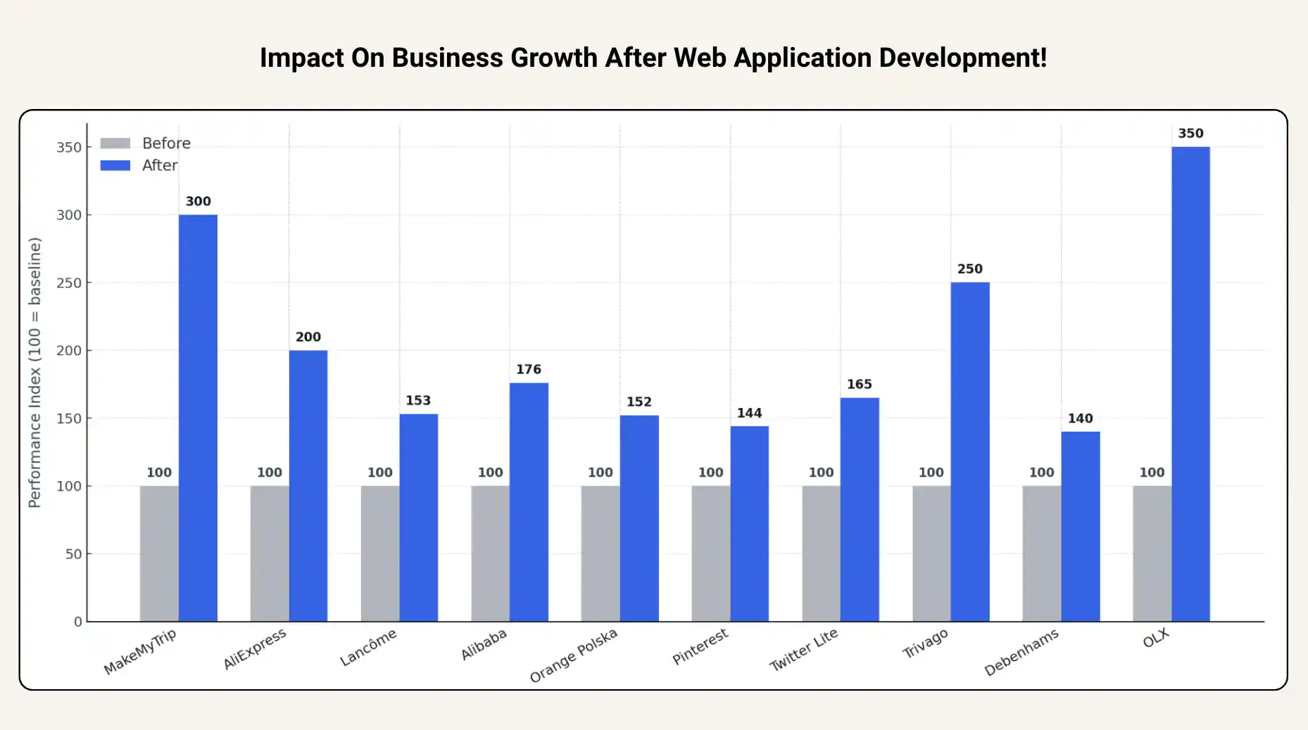 Based on recent studies it has been found the businesses who introduced web applications have seen growth in positive user experience by 40-45% within a short span of time. It also improved returning visitors by 20%.